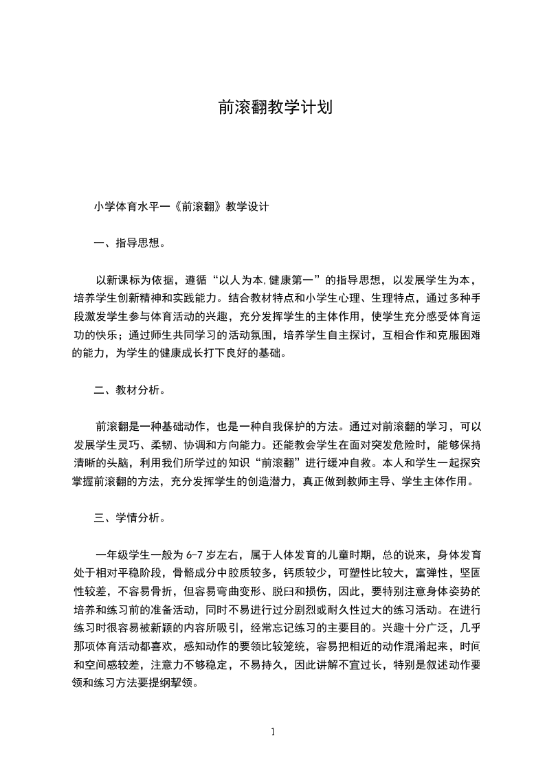 小学体育前滚翻课时计划