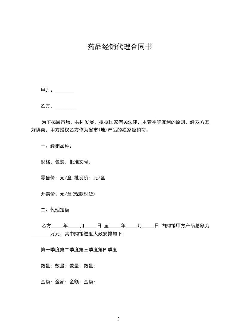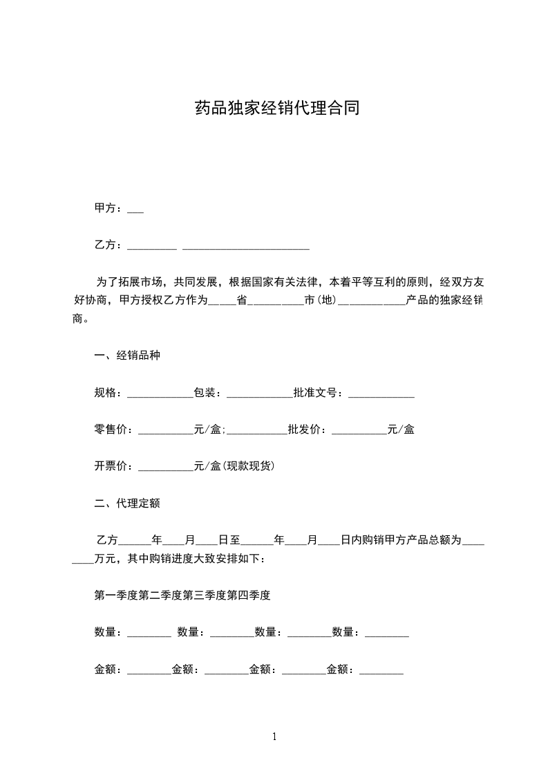 为了拓展市场,共同发展,根据国家有关法律,本着平等互利的原则,经双方友好协商,甲方授权乙方作为 省市(地) 产品的独家经销商。