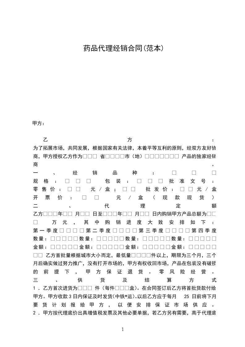 1 .乙方首次进货为 件(每件盒)。在合同签订后乙方将首批货款付给甲方。甲方收款3日内保证及时发货(中铁*运)。以后乙方应于每月 25 日前将下月要货计划报给甲方,以便安排保证市场供应。