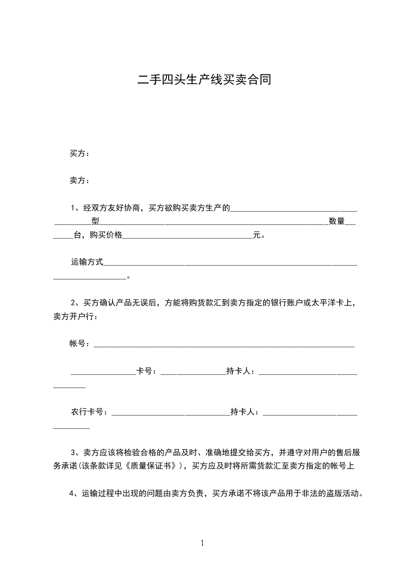 二手四头生产线买卖合同