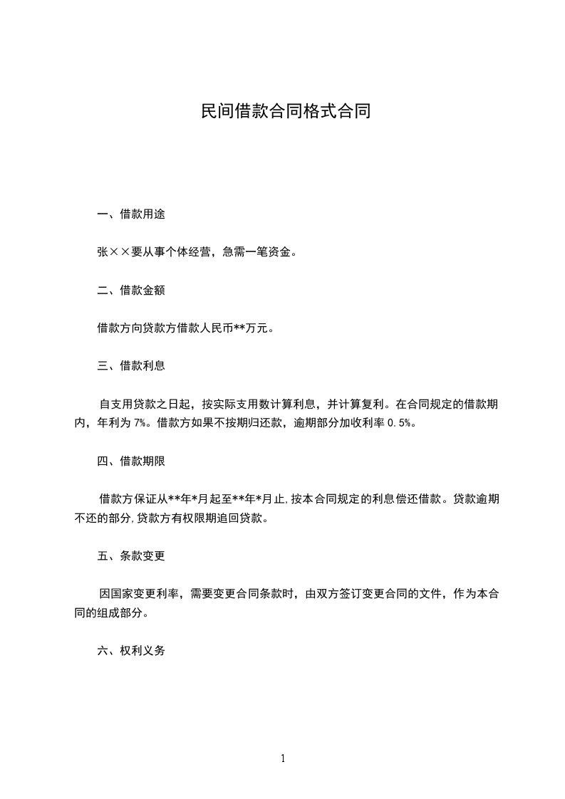 借款方向贷款方借款人民币**万元。