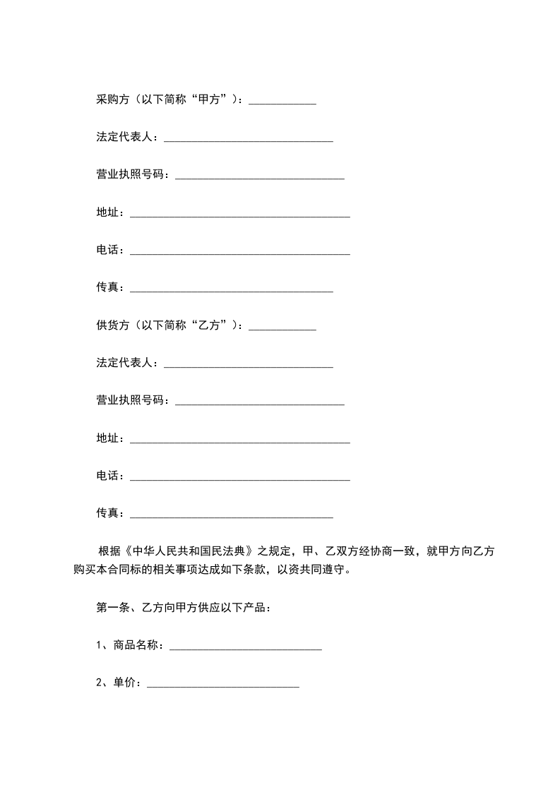 经甲、乙双方充分友好协商,就购买_________________项目特订立本合同,以便共同遵守。