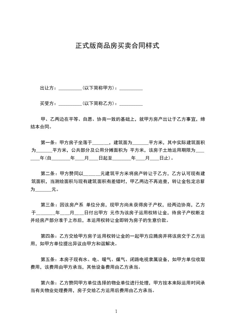 第四条 房屋售价 双方同意上述房屋售价为每建筑平方米人民币__________元,价款合计为人民币 元。(大写__佰___拾__万__仟___佰___拾元整)