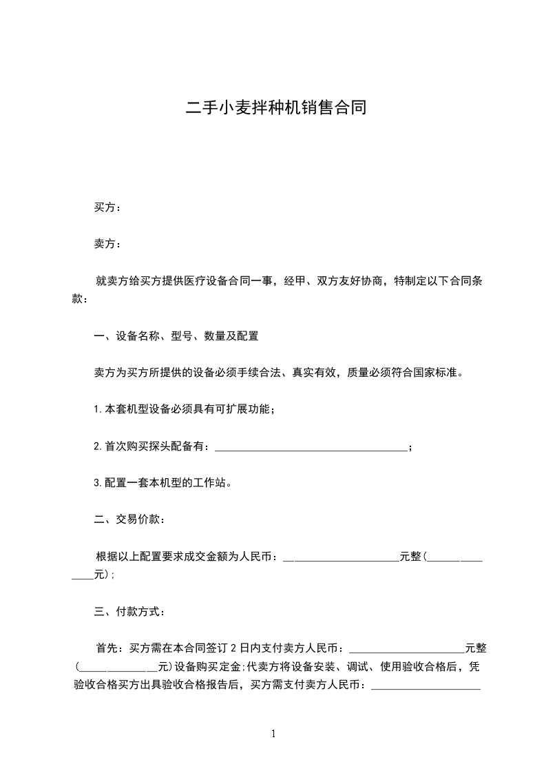 就卖方给买方提供医疗设备合同一事,经甲、双方友好协商,特制定以下合同条款: