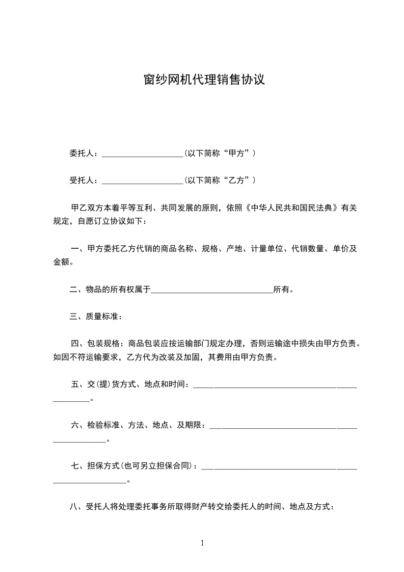 二手窗纱网机销售合同