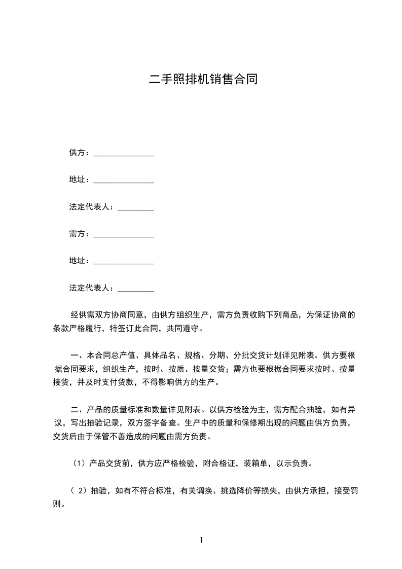 (2)双方于_________年_________月_________日在_________省(市)签订,自签订之日起生效,至合同规定的有效期结束止。本合同正本一式两份,供需双方各一份,副本若干份,送有关部门。