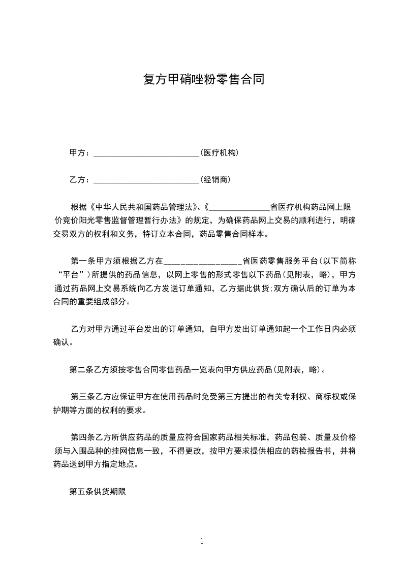 (一)乙方提供的药品必须符合国家的质量标准和有关要求。