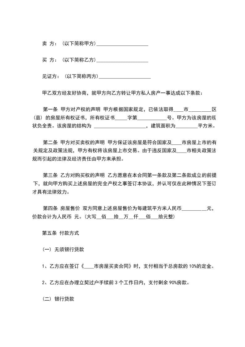 1.签订合同时,甲方必须向乙方交纳购房定金。甲方不履行合同,无权请求返还定金。乙方不履行合同,应当双倍返还甲方定金。合同履行完定金可抵作购房价款。