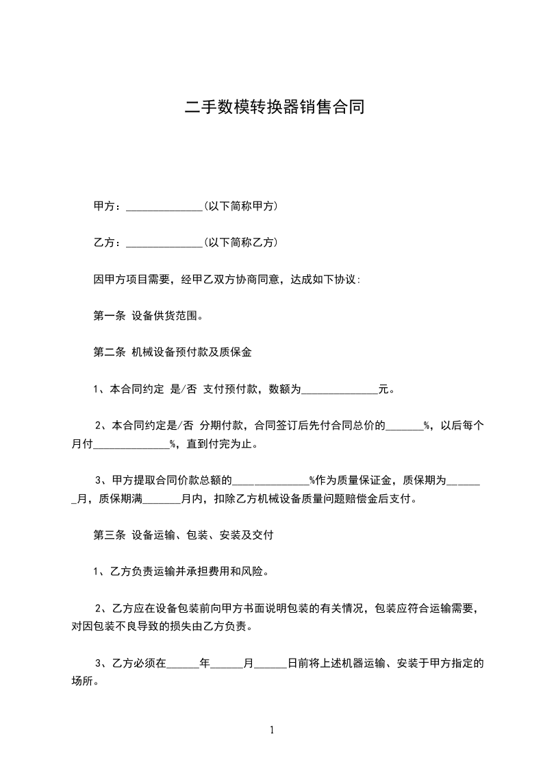 1、乙方保证出售的机器设备是全新未使用的,所具有的性能与说明书和国家相关标准相符。