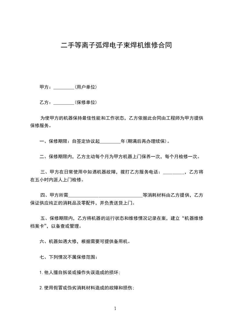 自设备经双方验收合格之日起,乙方应按有关规定进行保修服务,保修服务期限为______年,保修期内,乙方必须在接到甲方要求维修通知后______天派人到设备现场维修,设备维修所用的材料成本易损件由甲方承担。