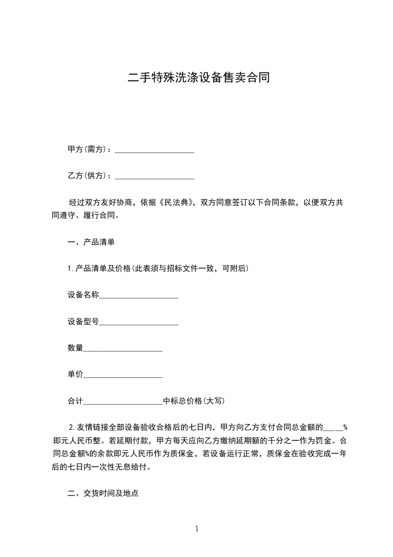 2.友情链接全部设备验收合格后的七日内,甲方向乙方支付合同总金额的_____%即元人民币整。若延期付款,甲方每天应向乙方缴纳延期额的千分之一作为罚金。合同总金额%的余款即元人民币作为质保金,若设备运行正常,质保金在验收完成一年后的七日内一次性无息给付。