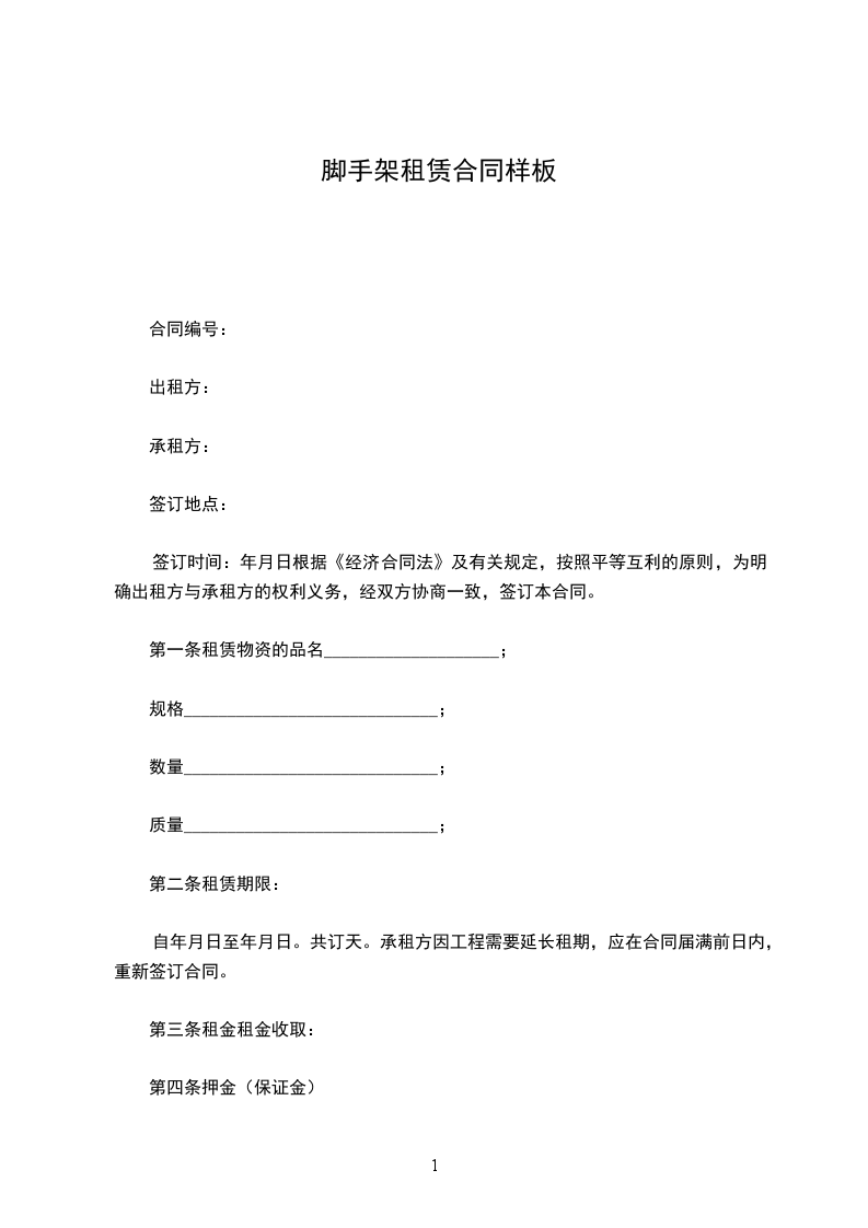 经双方协商,出租方收取承租方押金元。承租方交纳后办理提货手续。租赁期间不得以押金抵作租金;租赁期满,扣除应付租赁物资缺损赔偿金后,押金余额退还承租方。