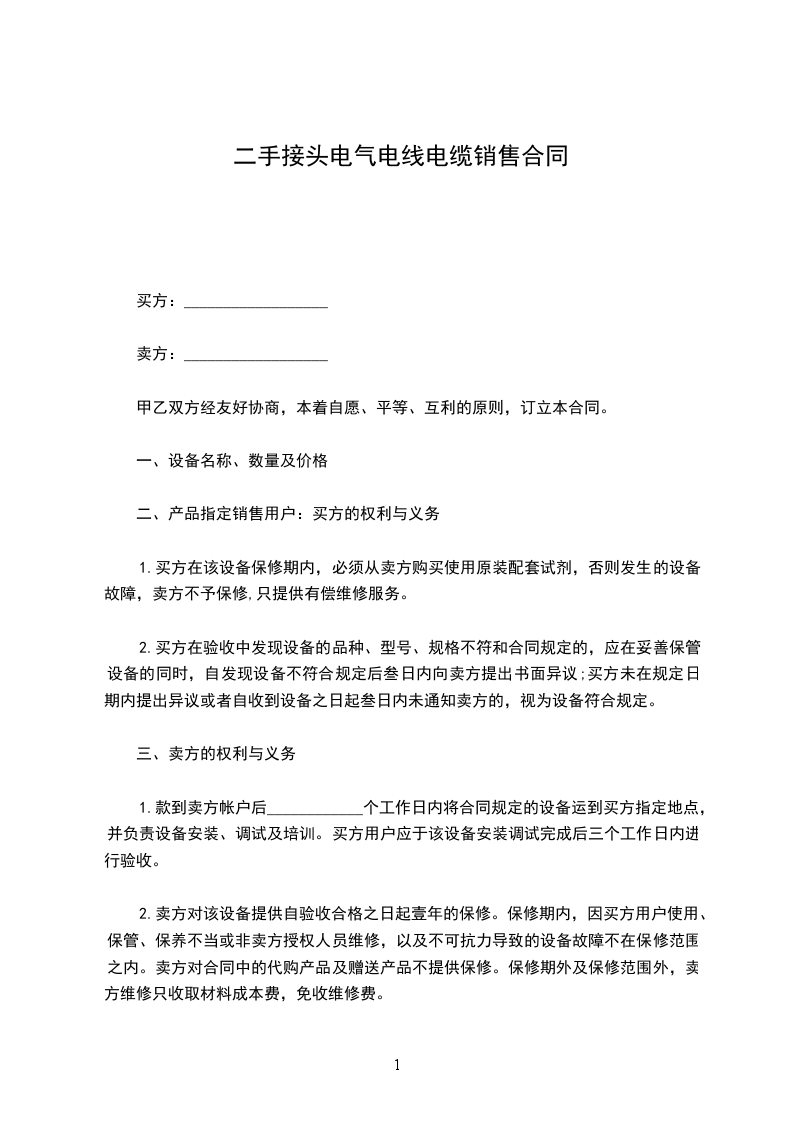 1. 合同供货设备