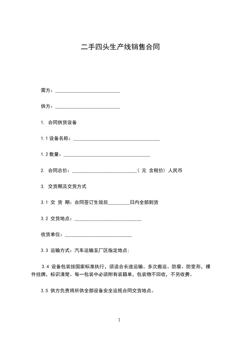 3.5 供方负责将所供全部设备安全运抵合同交货地点。