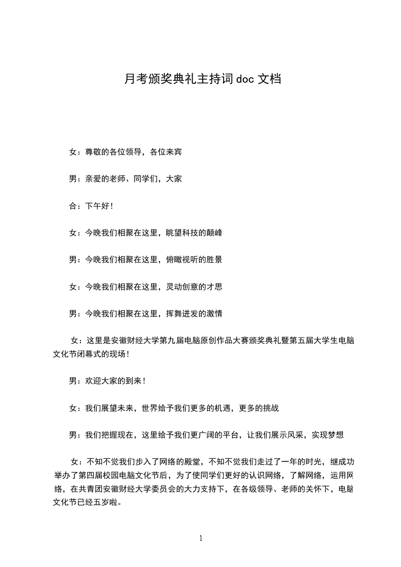 1、主持人开场白。