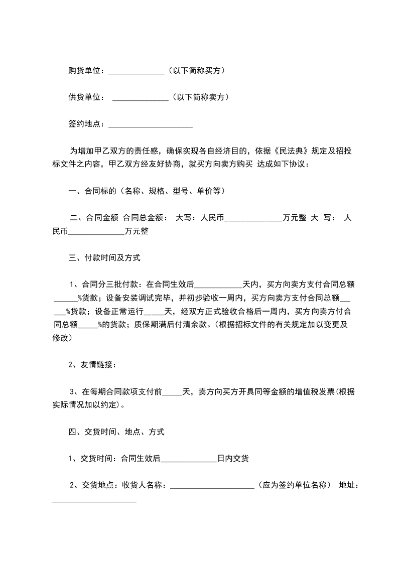 1、交货时间:合同生效后______________日内交货