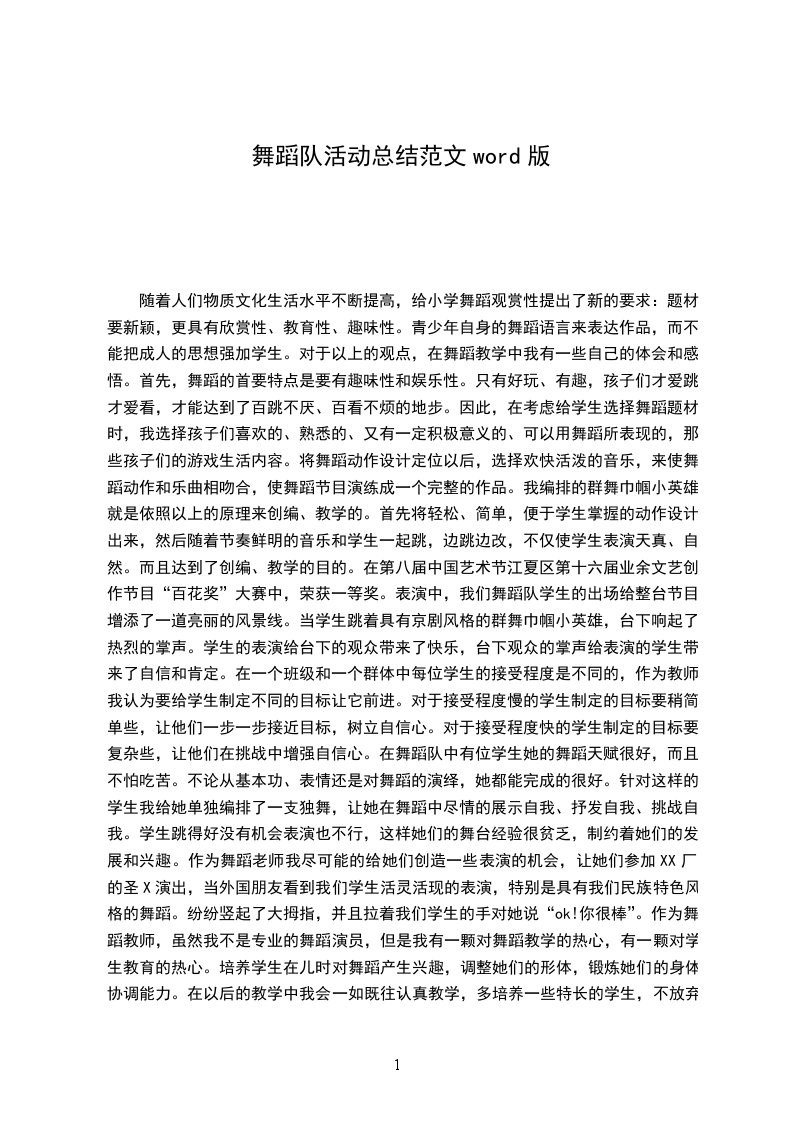 舞蹈队作为艺术团的一个下设的学生活动团体,在这一学期队长和副队长严格按学校的精神指导,悉心的组织舞蹈队的平时训练,并严格要求我们。经过了这一学期的训练,舞蹈队的学生都有明显的进步和提高。队员的舞蹈意识很强,基本功进步很快。通过每周四的训练,队员在韧带方面有了较大提高,也锻炼了我们身体的协调性。