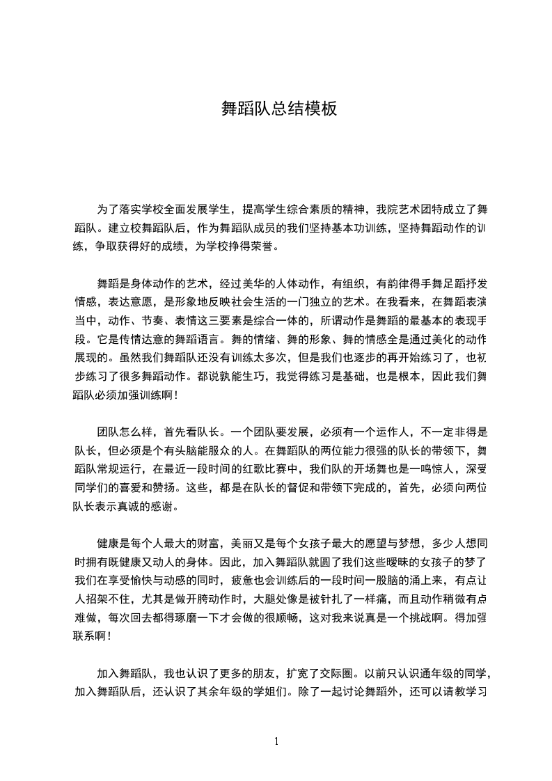 加入舞蹈队虽然还没有多久,但我也体会到了舞蹈队这个大家庭的那种温馨和亲切的感觉,相信大家心中和我想的一样——大家都很喜欢舞蹈队,想在舞蹈队学习更多。虽然我不是专门学舞蹈的,但我对舞蹈有一颗热忱的心,对舞蹈有很深的兴趣。刚开始加入舞蹈队只是为了可以跳舞,但去了舞蹈队后和队员们一起跳舞,感觉很开心,很满足。我想我是喜欢舞蹈队的。