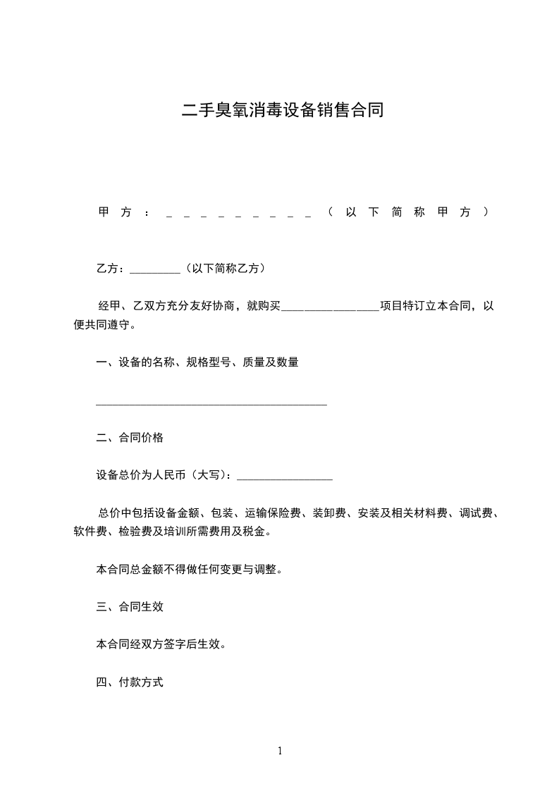 设备总价为人民币(大写):_________________