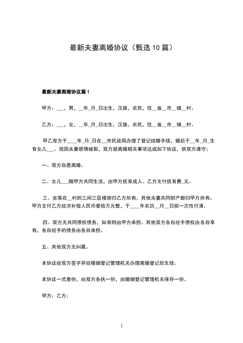 最新夫妻离婚协议书范文篇10