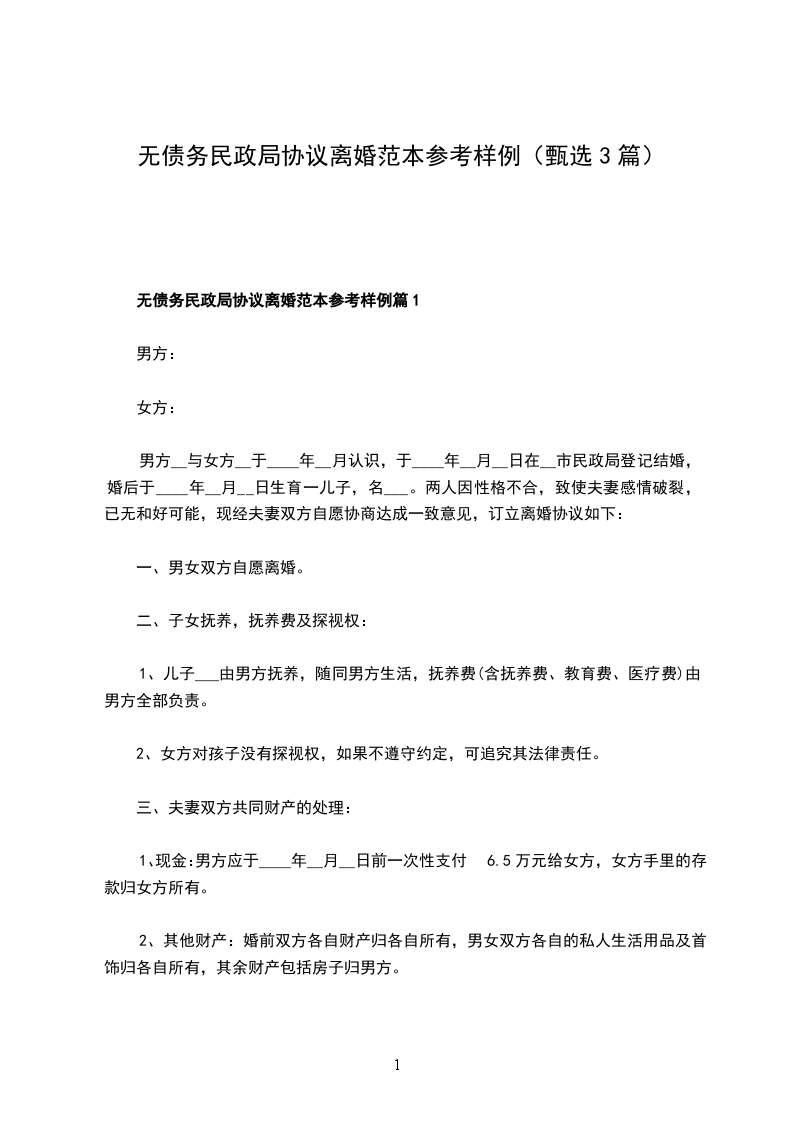 本协议一式三份,自婚姻登记机颁发《离婚证》之日起生效,男、女双方各执一份,婚姻登记机关存档一份。