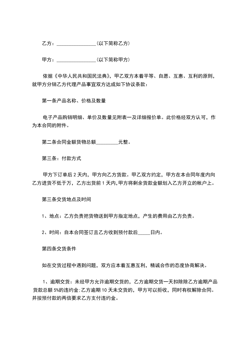 1.如有违约,违约金按货款总额每天千分之一计算。