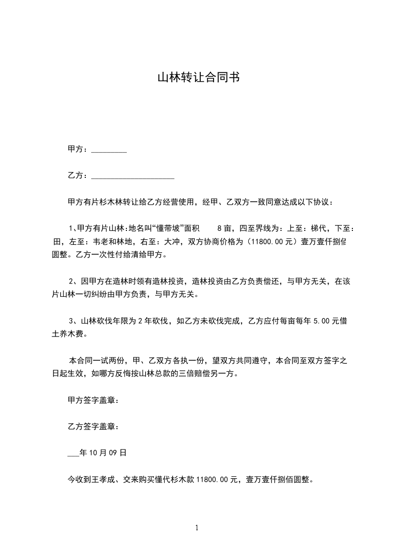 3、如果乙方没有按时支付合同款则甲方有权无偿收回该山林地并其上所有资产,已付款项不再退还。