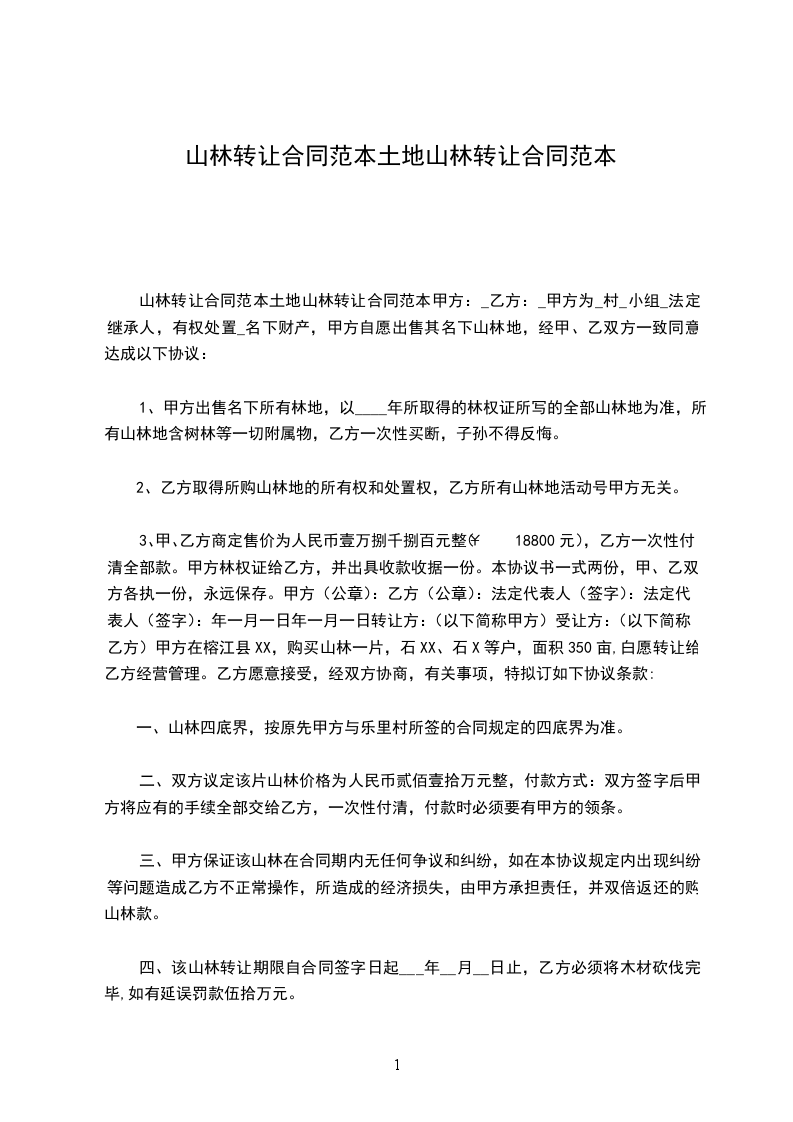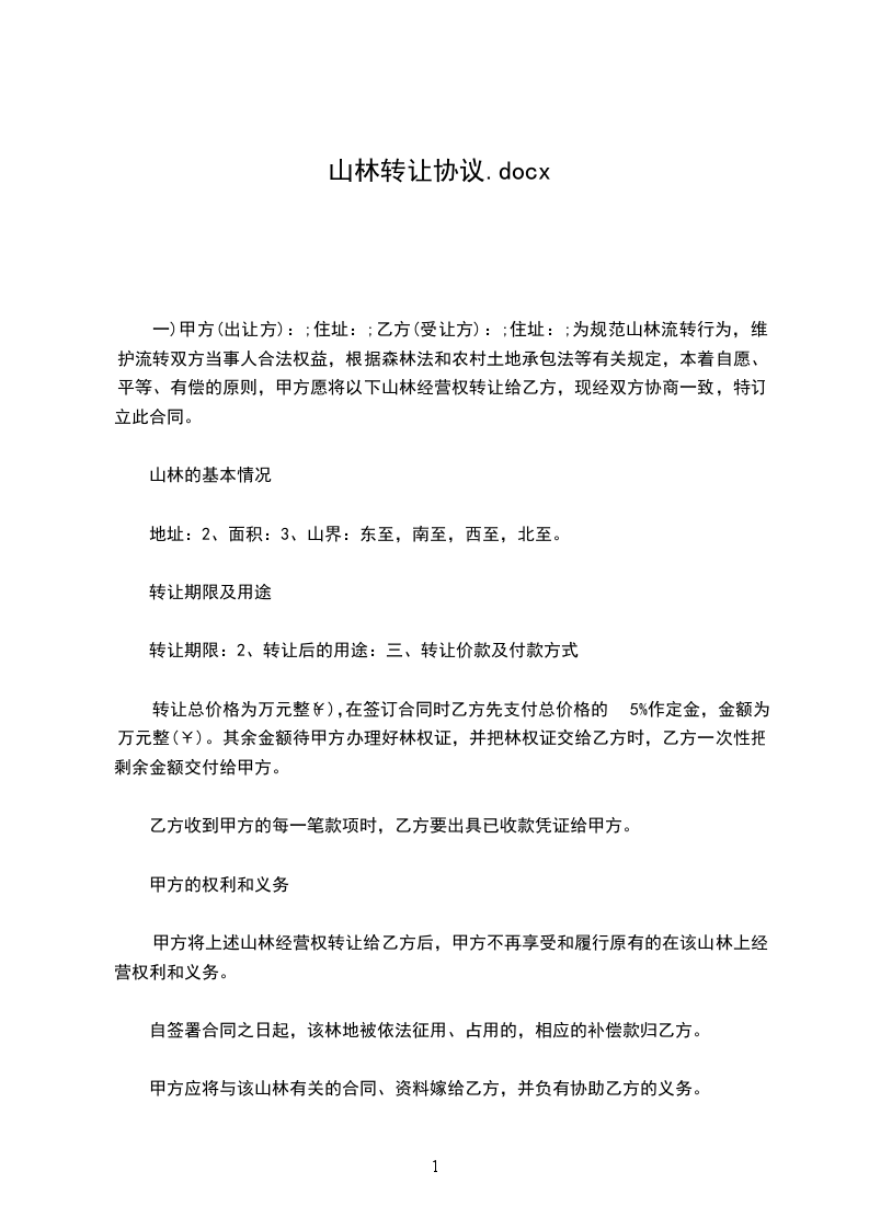 为规范山林流转行为,维护流转双方当事人合法权益,根据《森林法》和《农村土地承包法》等有关规定,本着自愿、平等、有偿的原则,甲方愿将以下山林经营权转让给乙方,现经双方协商一致,特订立此合同。