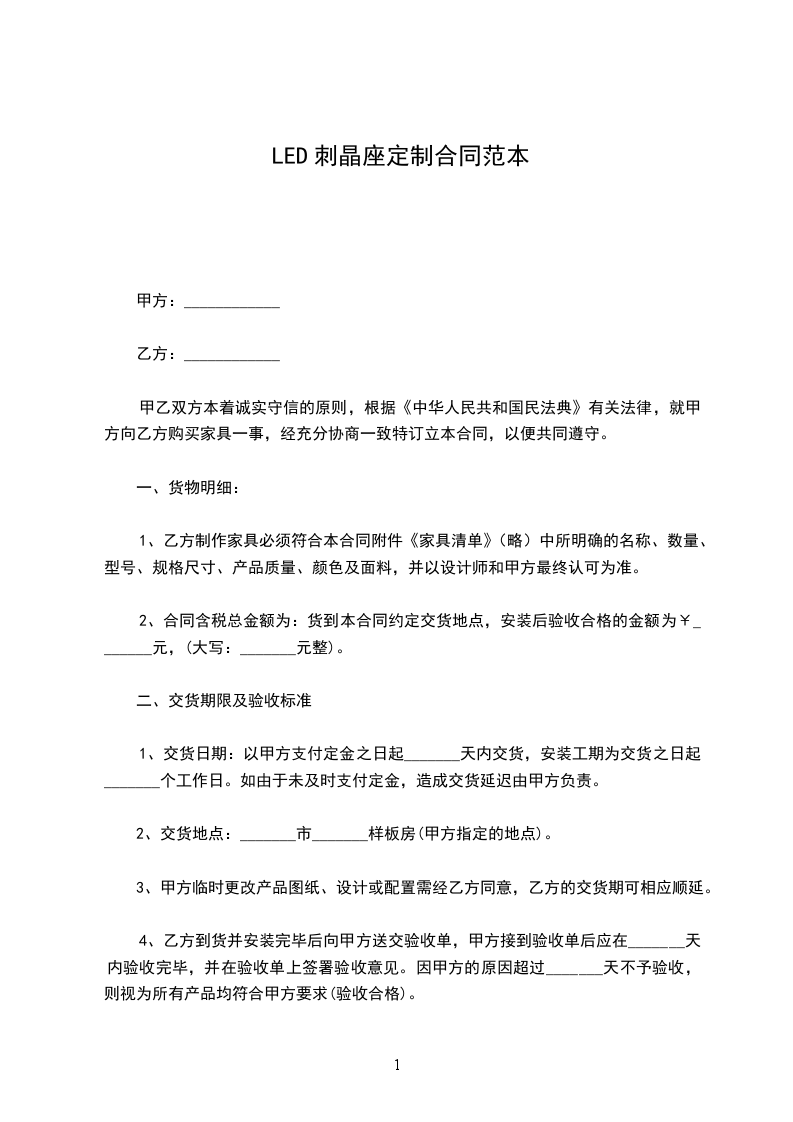 第一条:标的物(见清单或送货单)