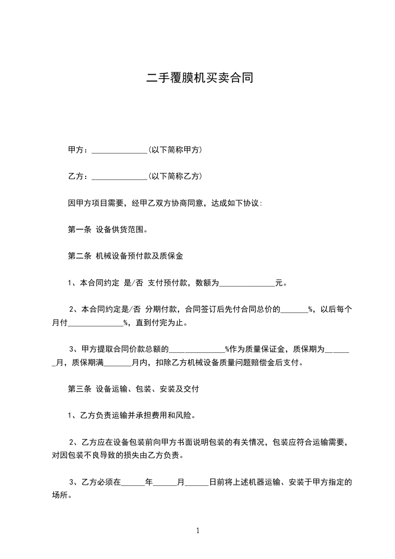 3、乙方必须在______年______月______日前将上述机器运输、安装于甲方指定的场所。