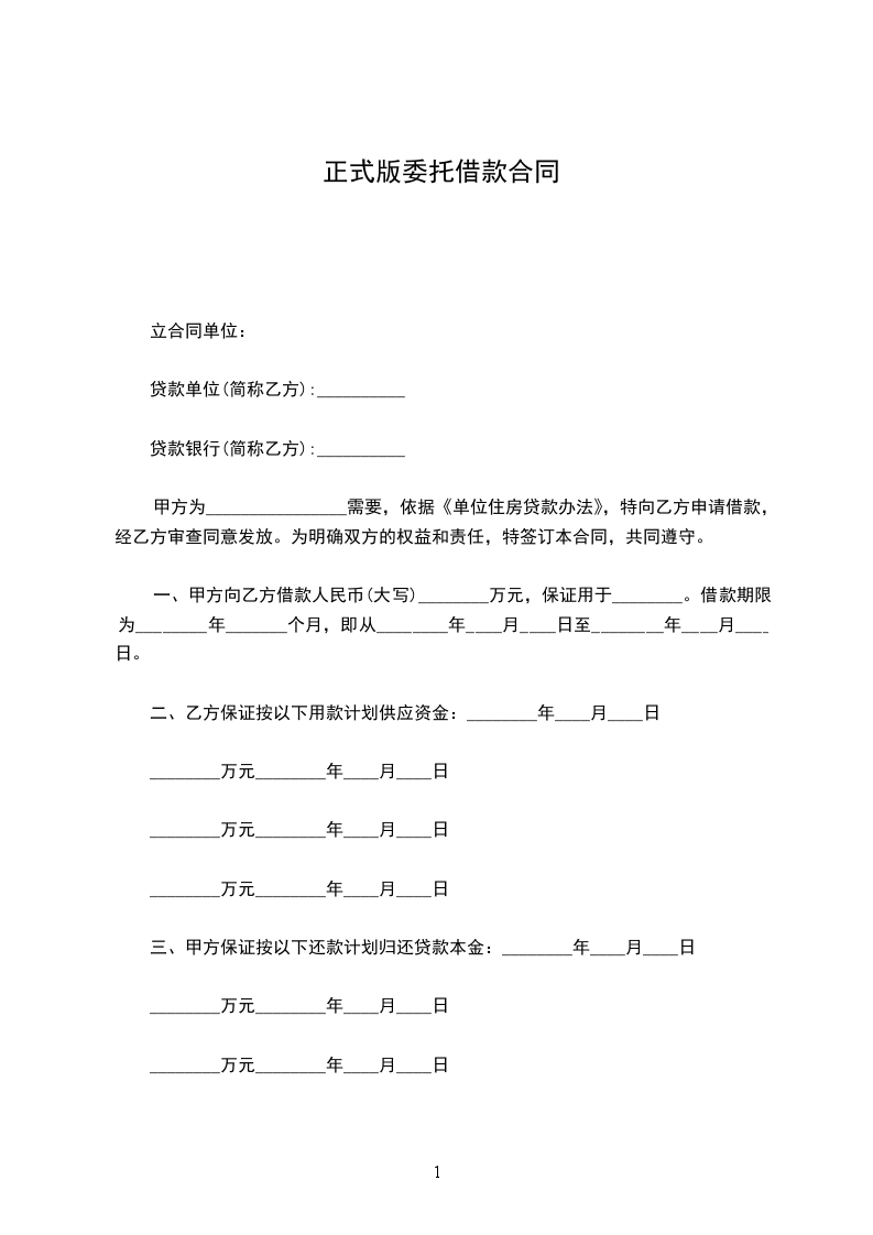 一、借款金额: ______元(大写:人民币______万元整)。