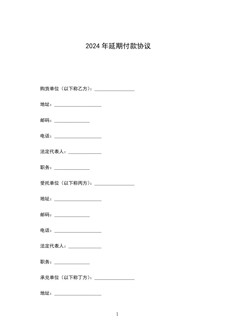 二、乙方延付货款期限为____年____月。分____次还清,具体还款日期和金额为: