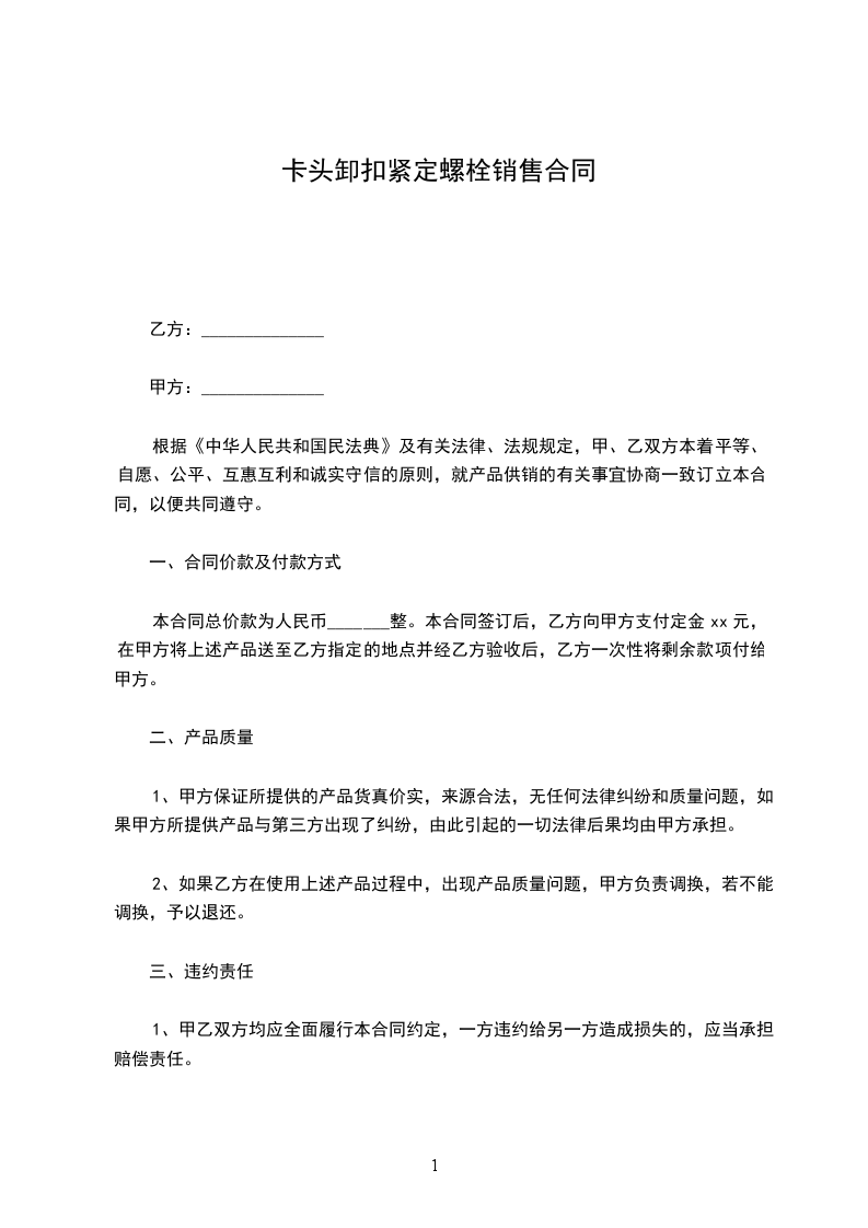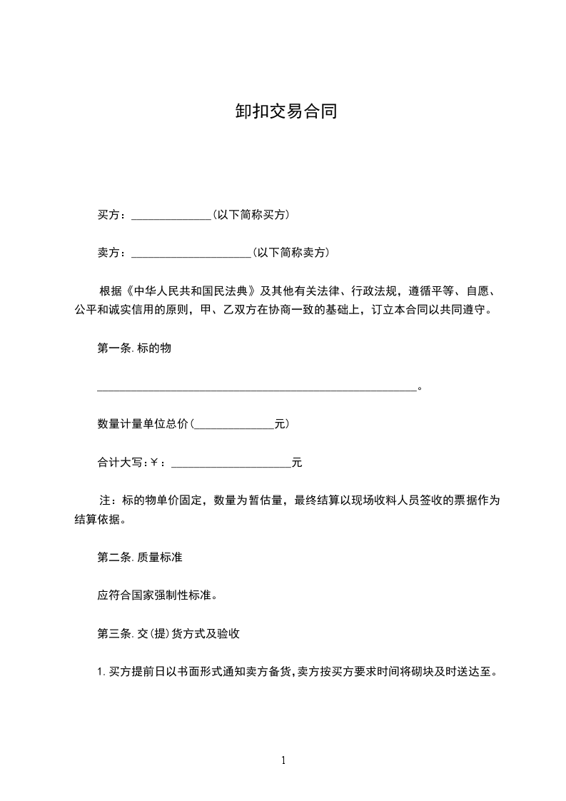 1、交货日期:合同生效后____________日内卖方交付买方____________产品。卖方收到买方货款后,交付买方____________产品。