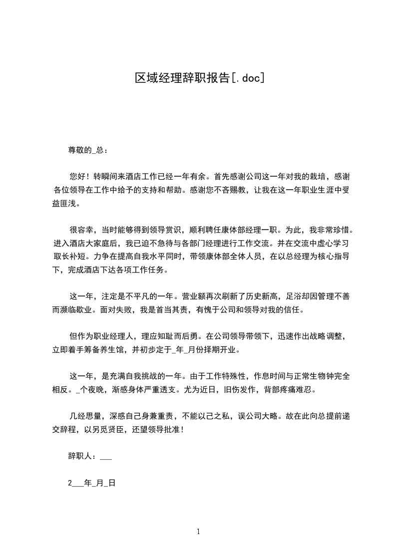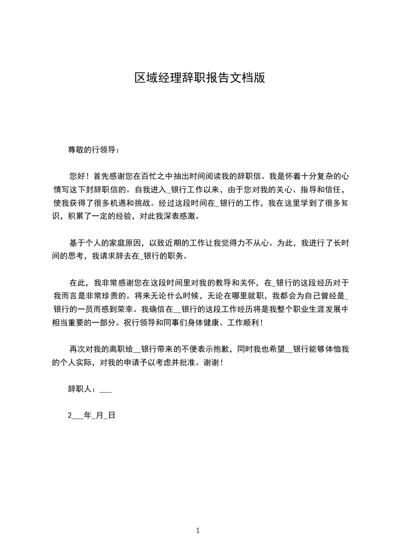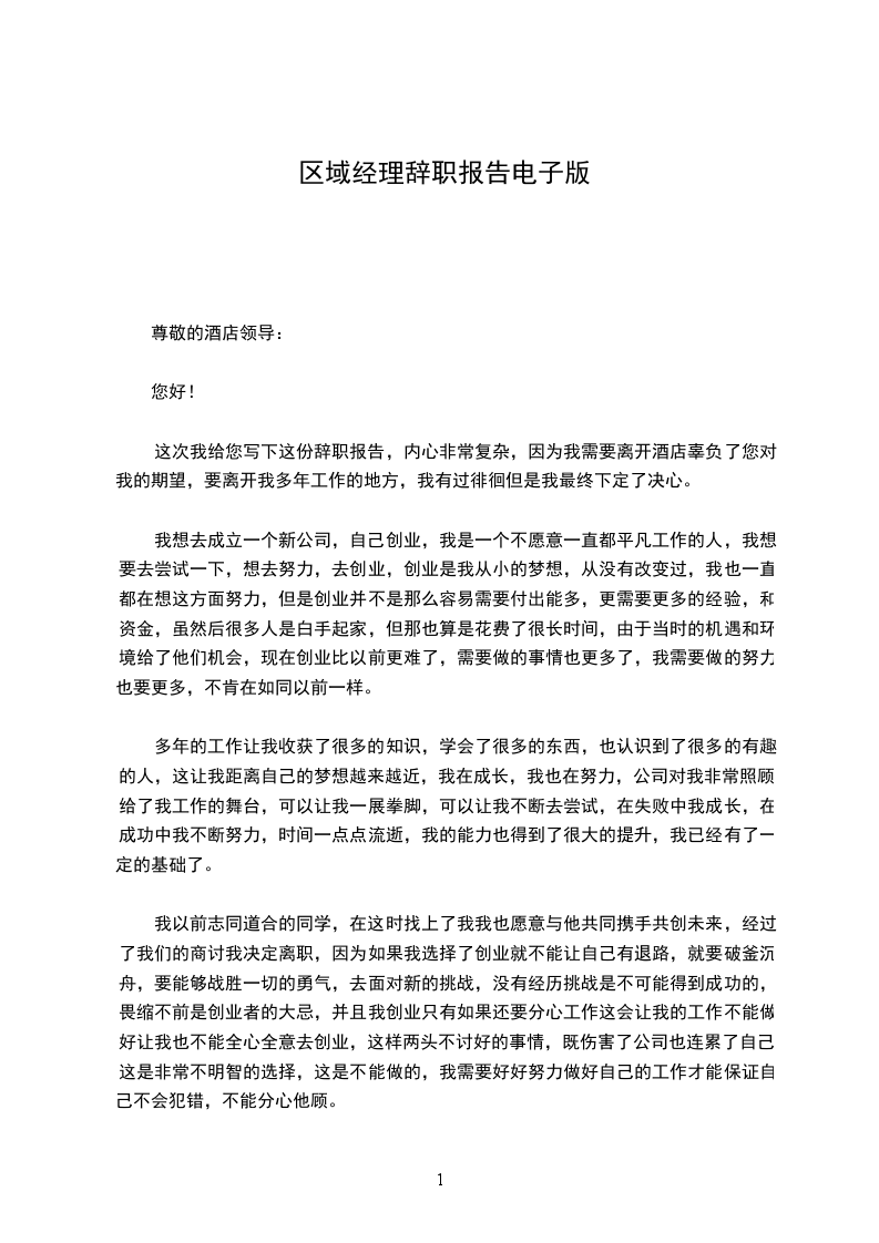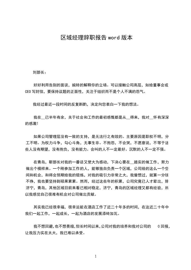 区域经理辞职报告