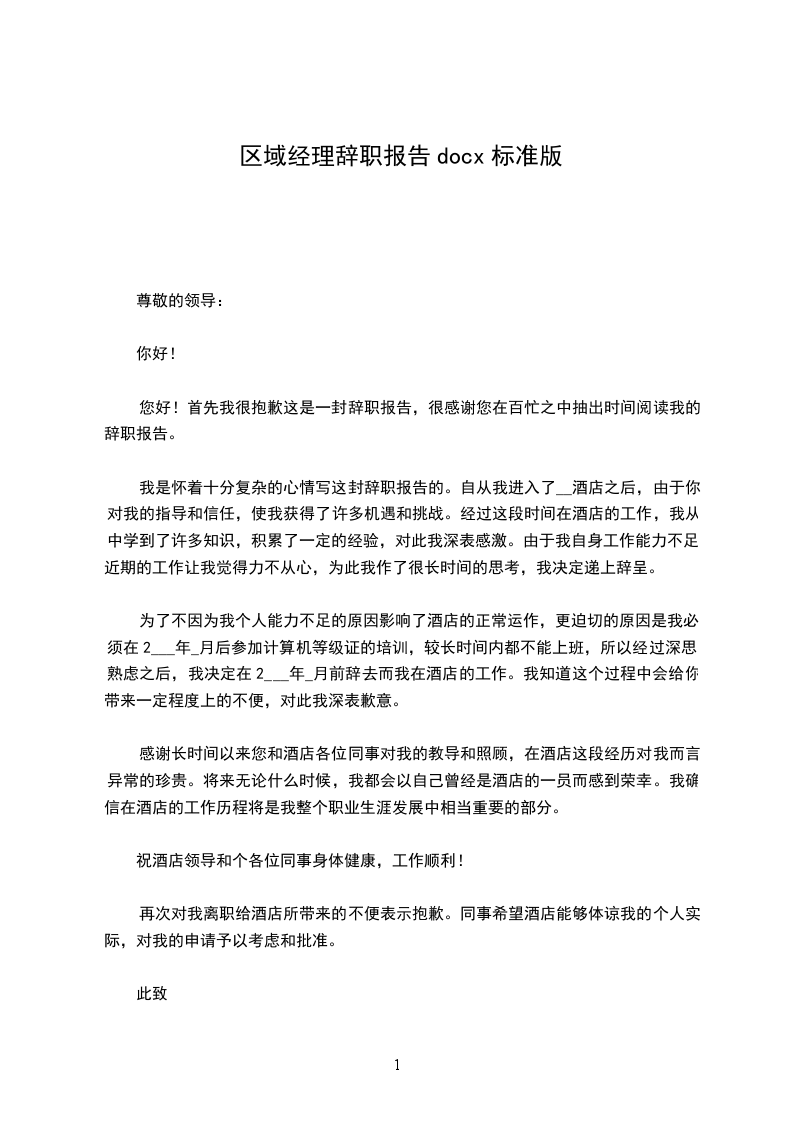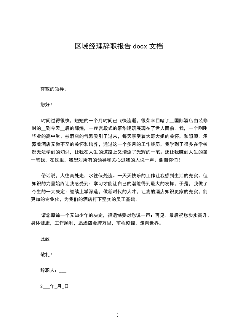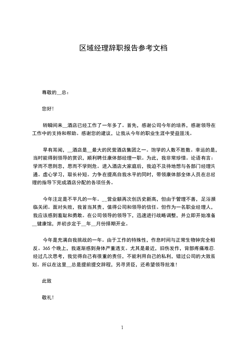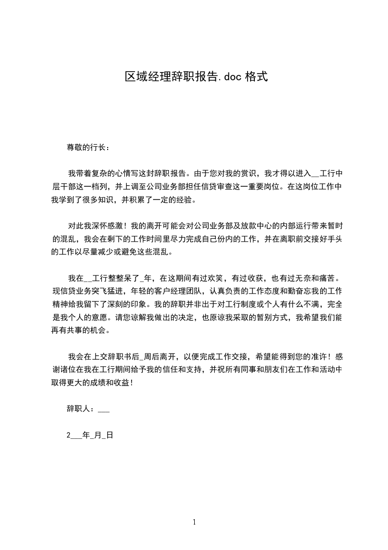 区域经理辞职报告