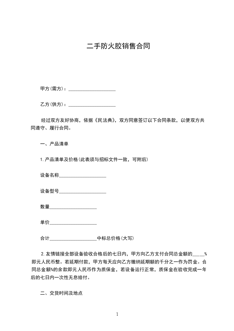 1.交货时间:(投标文件承诺时间)。若延期交货,乙方每天应向甲方缴纳延期额的千分之一作为罚金。因不可抗拒力所导致的交货,服务及付款延迟等按照《民法典》有关条文处理。