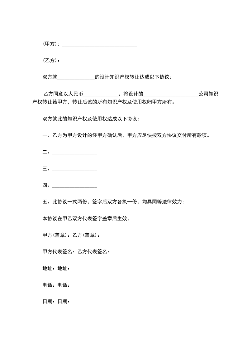 乙方同意以人民币______________,将设计的___________________________公司logo知识产权转让给甲方,转让后该logo的所有知识产权及使用权归甲方所有。