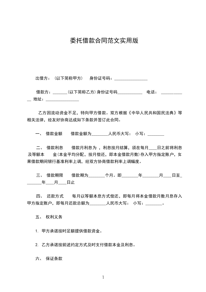 一、借款金额: ______元(大写:______人民币 )。