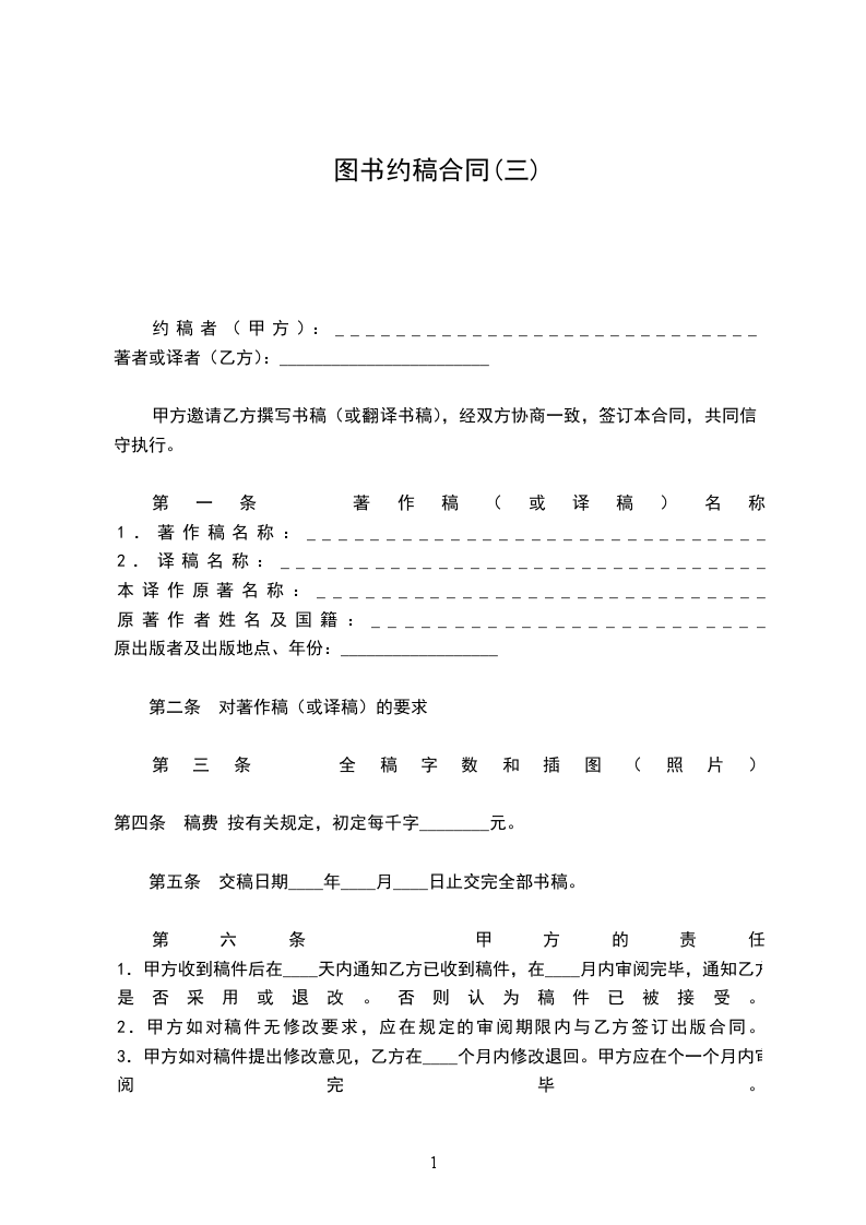 4.稿件如经修改符合出版要求,甲方应在审阅期限内与乙方签订出版合同。若经修改仍不符合要求,甲方应书面通知乙方终止本合同并将稿件退还乙方,但应根据约稿情况向乙方支付____元的约稿费,作为给乙方劳动的补偿。