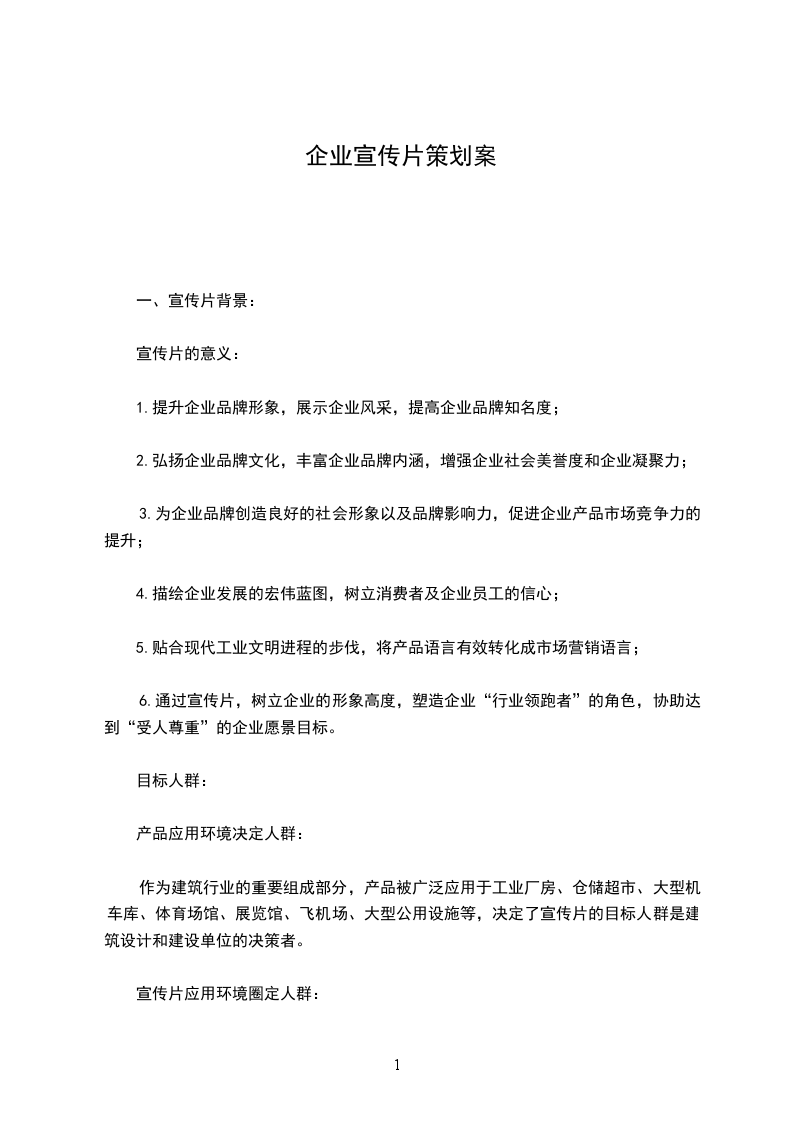 本宣传片方案旨在展示0建筑系统工程有限公司的整体实力,产品详细介绍,企业销售主张以及具有前瞻性的发展眼光。