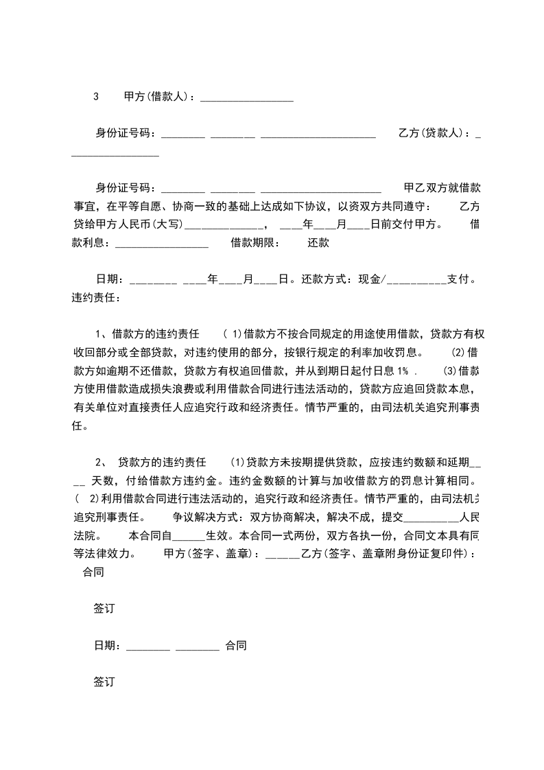 3.甲方不能按时支付利息的,乙方有权按照未付利息 计算,要求甲方支付违约金;甲方逾期未清偿借款本金的,乙方有权按照借款本金 计算,要求甲方支付违约金。