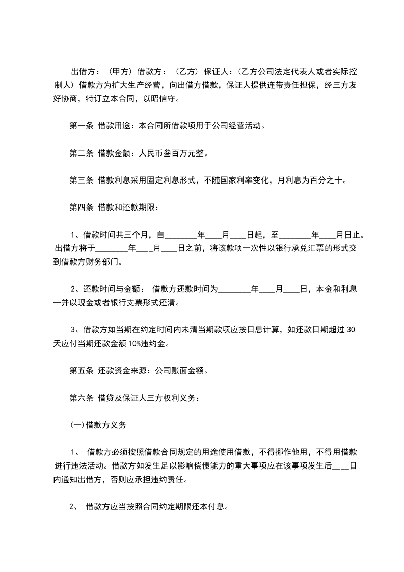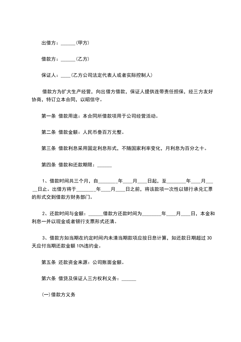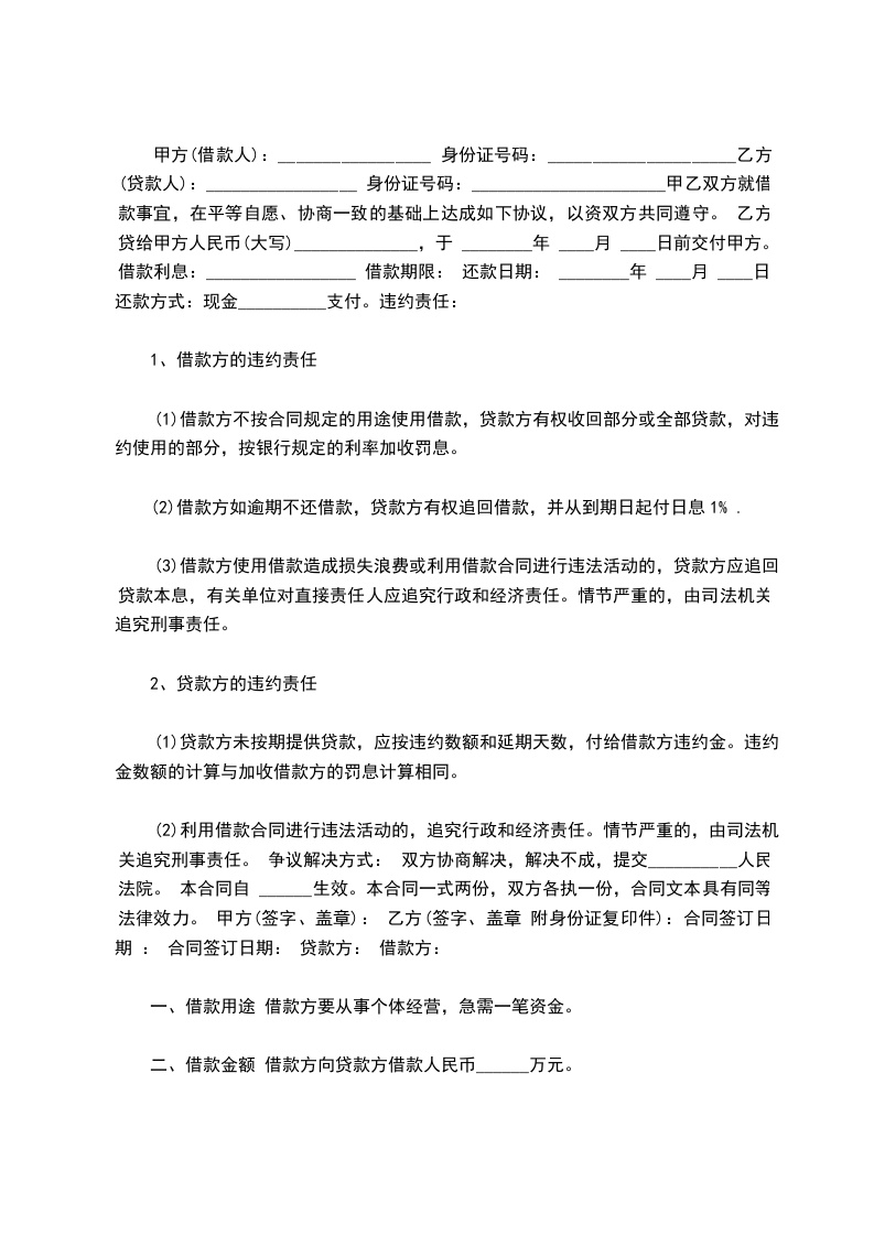 第一条 借款金额 甲方向乙方借款人民币(大写)_________元。