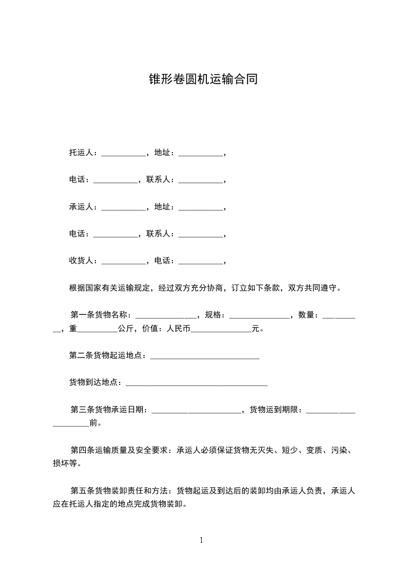 1、交货时间:合同生效后______________日内交货