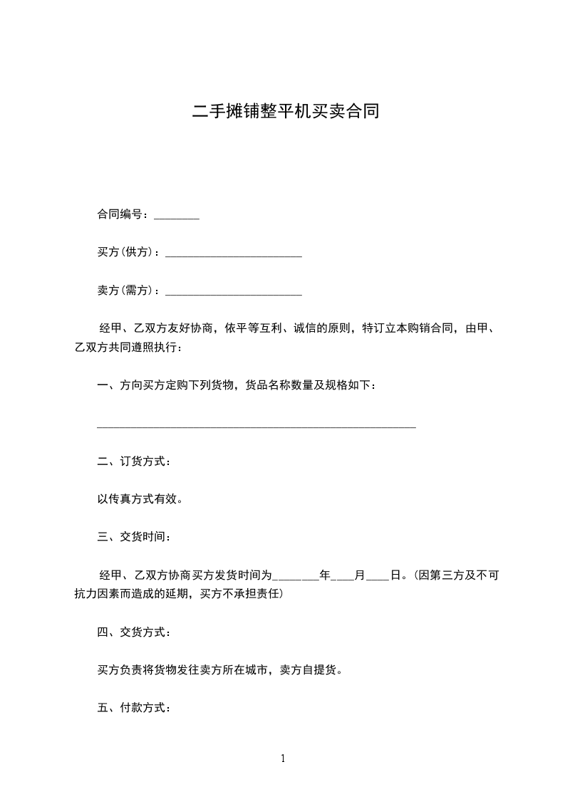 一、方向买方定购下列货物,货品名称数量及规格如下: