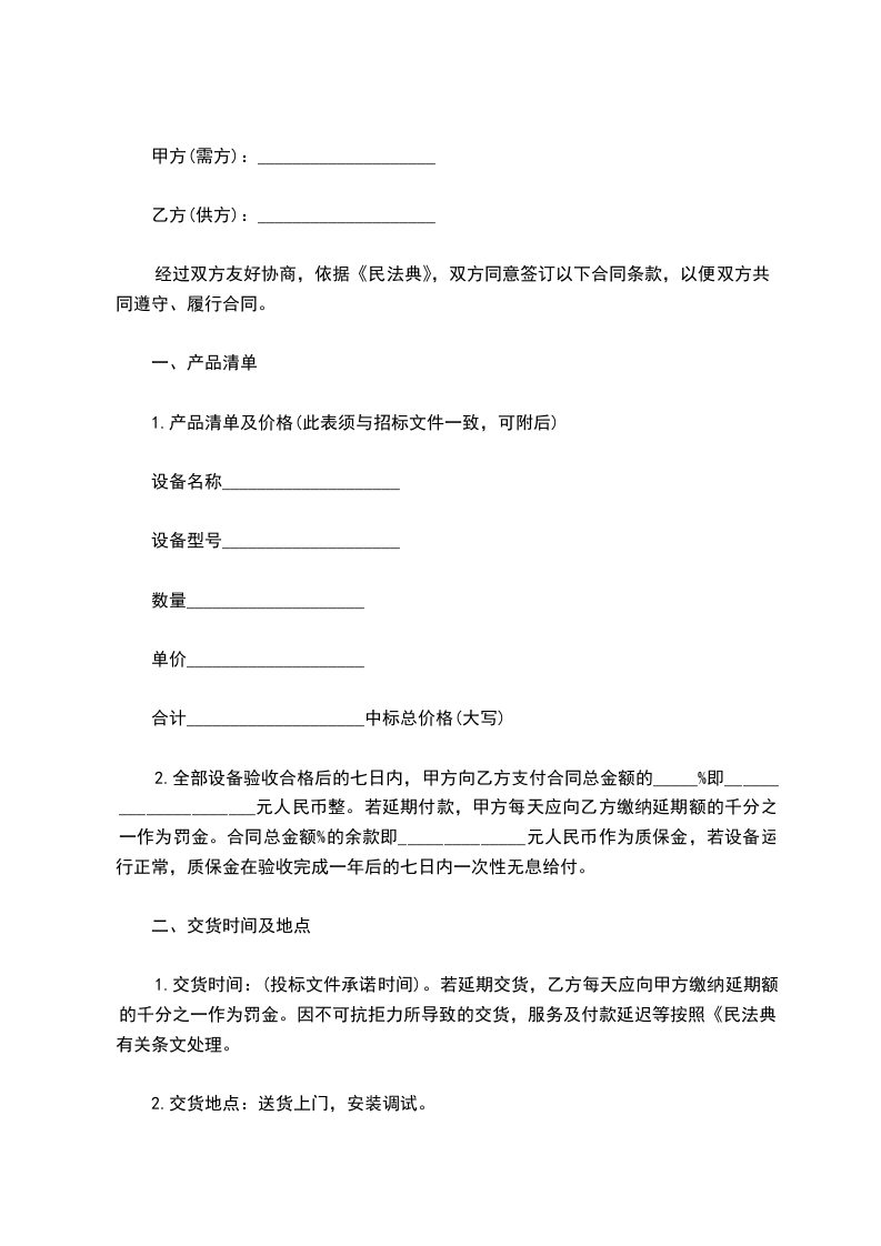 (1)交货时间_________月__________日前。