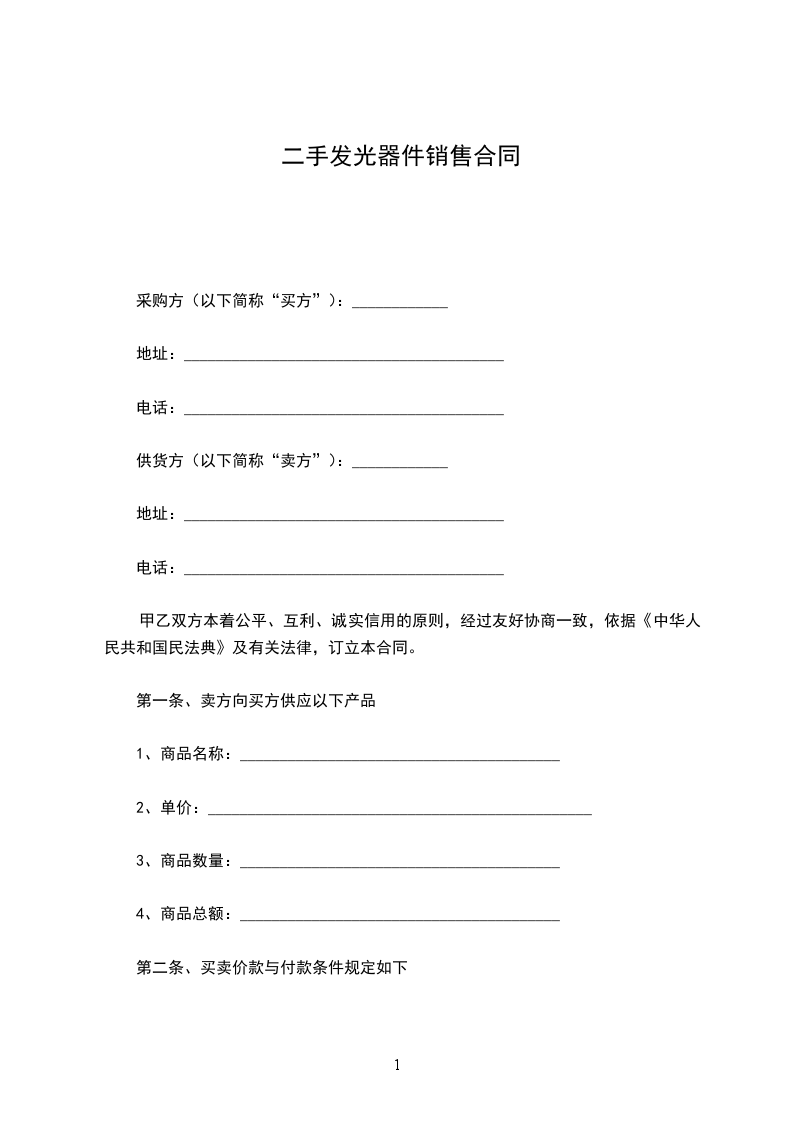 第一条、卖方向买方供应以下产品