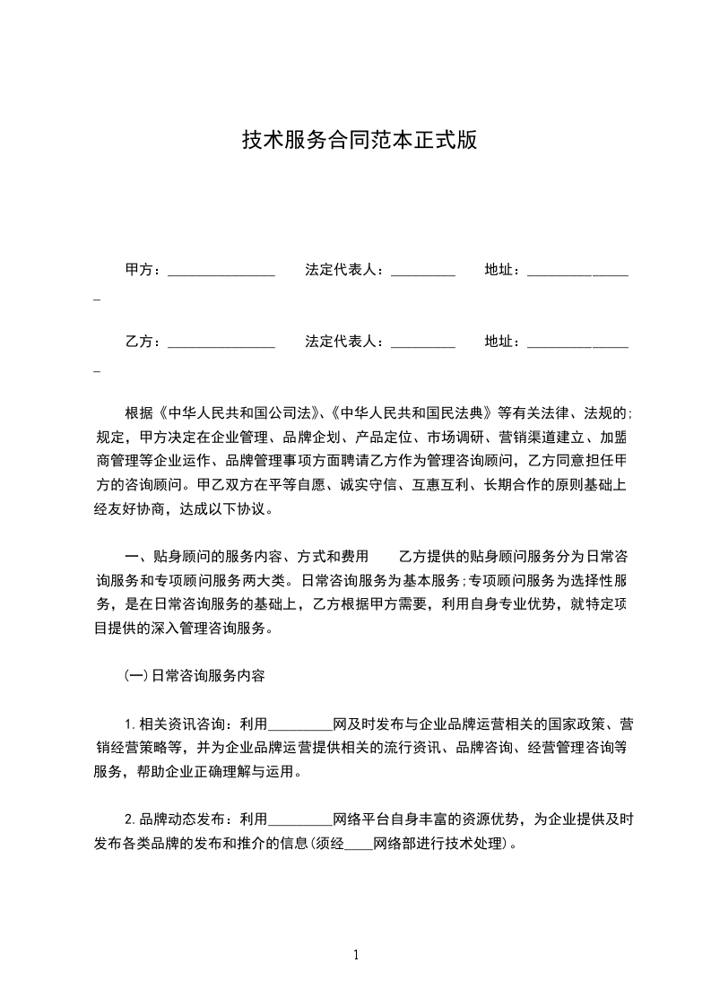 2.甲方作为乙方的网络商务会员,甲方只须向乙方交纳会员费共计人民币_________元年,每月承担费用_________元,即可成为享受具有各种不同专业特长的专家为您提供的专业化日常咨询服务内容。