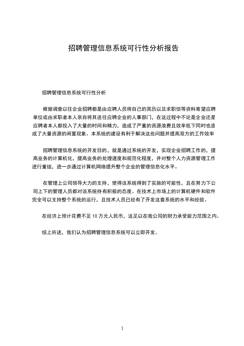 综上所述,我们认为招聘管理信息系统可以立即开发。