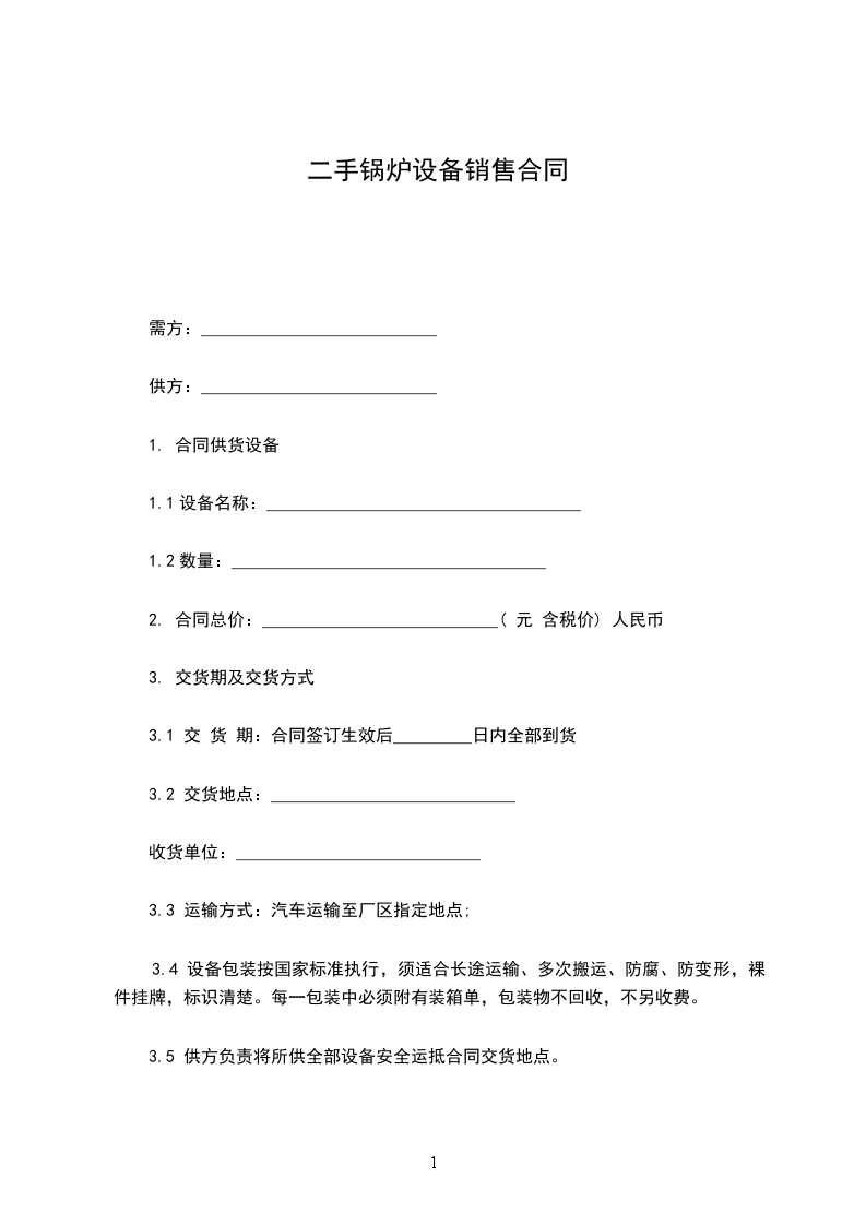3.5 供方负责将所供全部设备安全运抵合同交货地点。