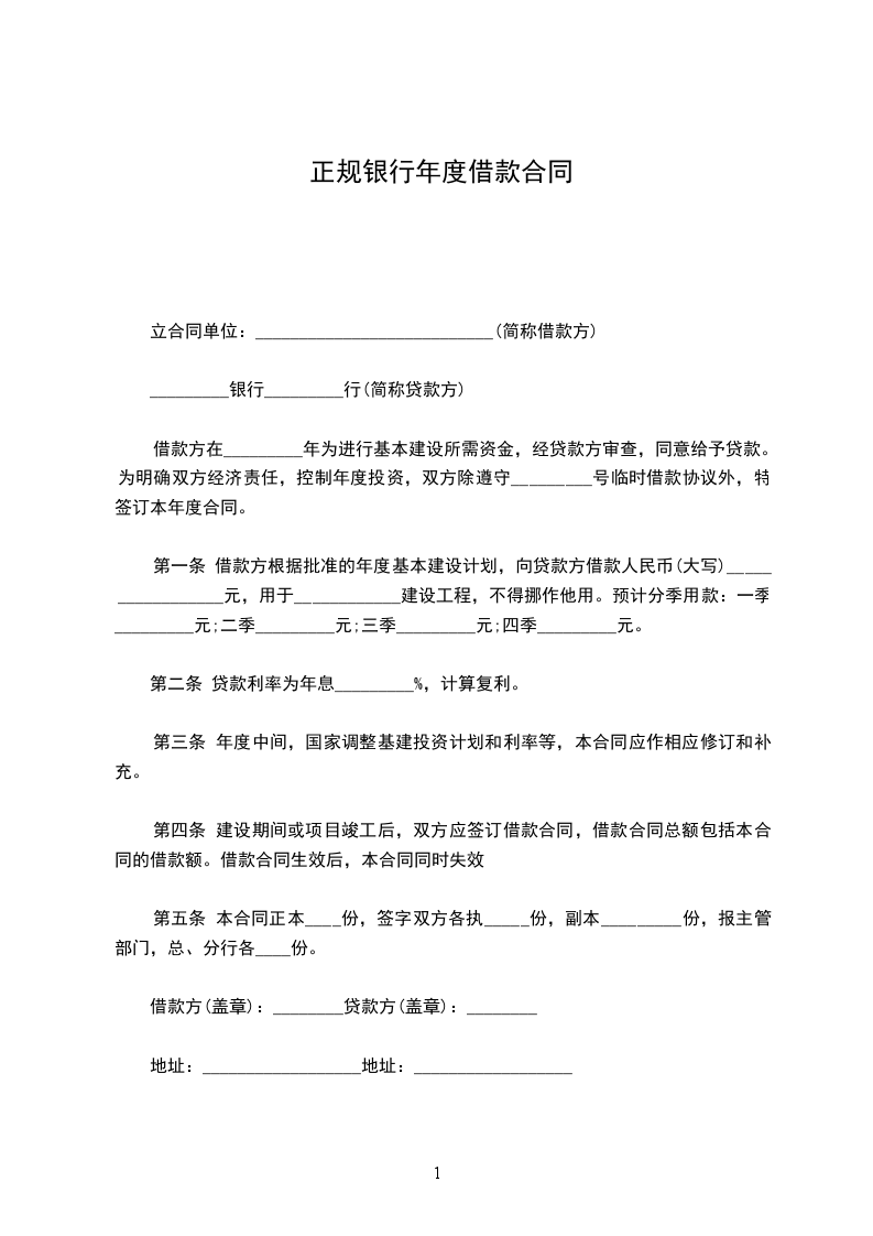 第四条 贷款利率 贷款利率按签订本合同时公布的利率确定年利率为___%(月利率___%)。在借款期限内利率变更,按中国人民银行规定办理。